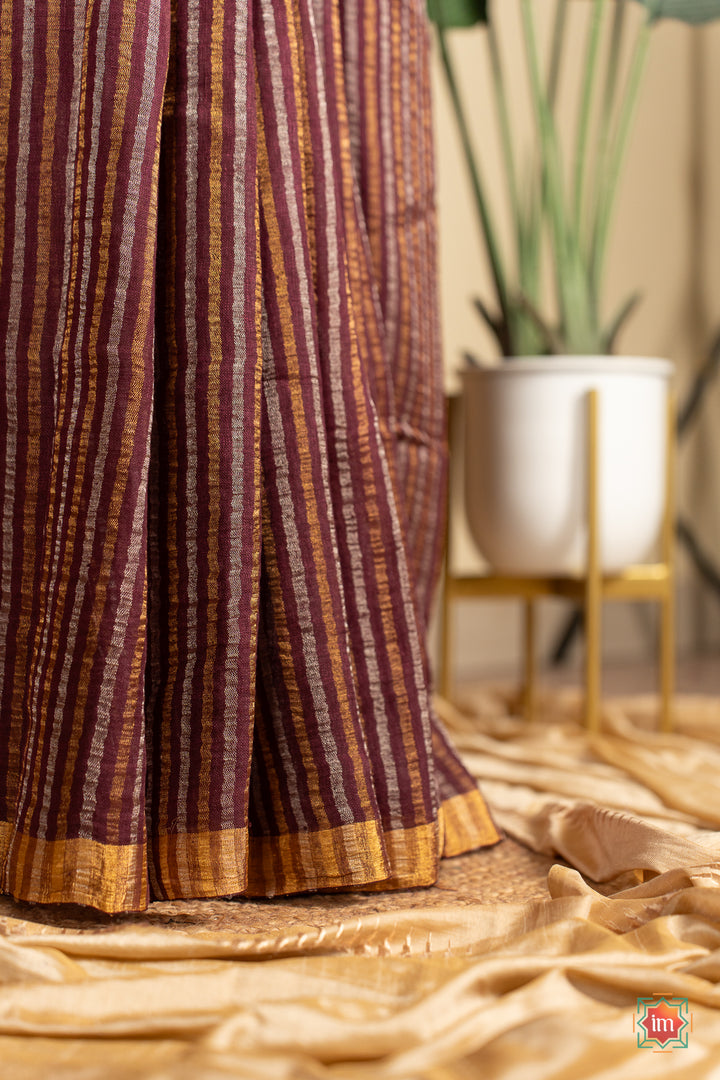 Coca brown Purple shot Handwoven Linen With Zari Saree Cocoa charm
