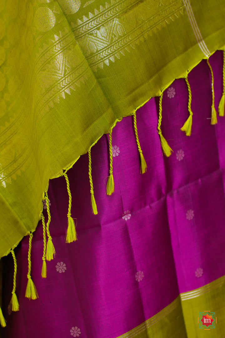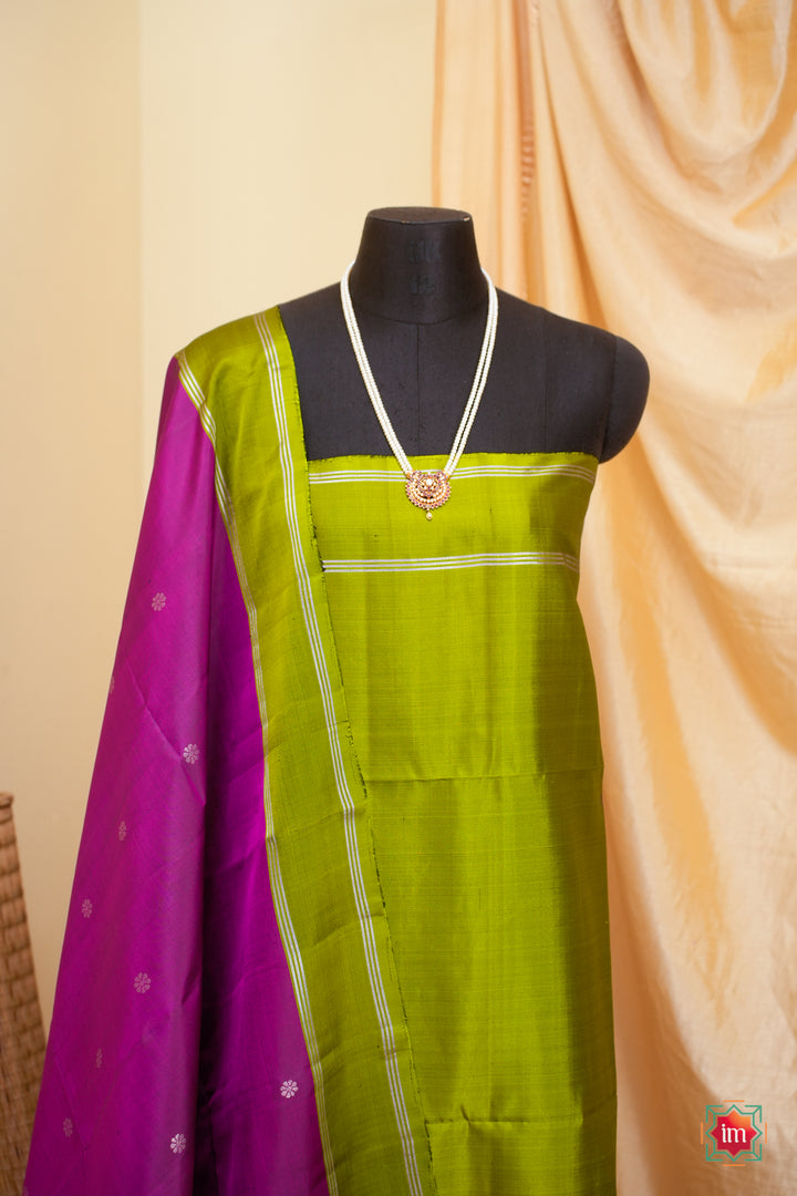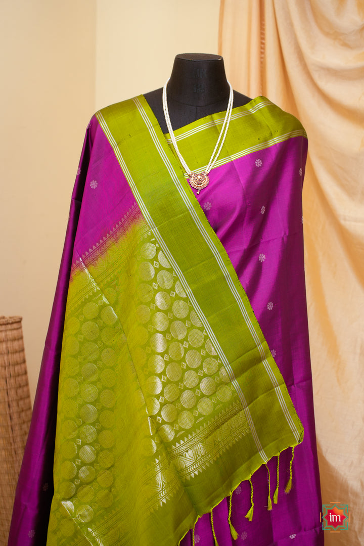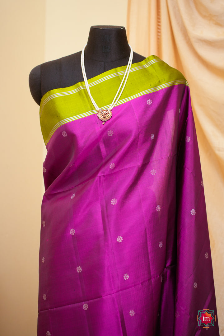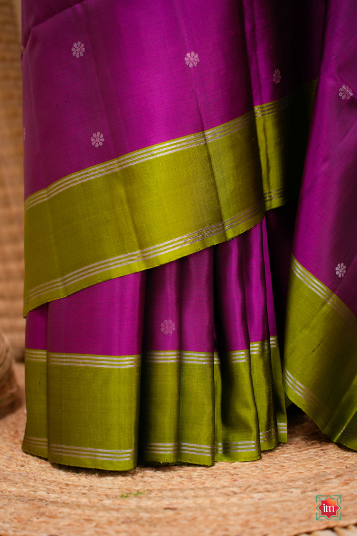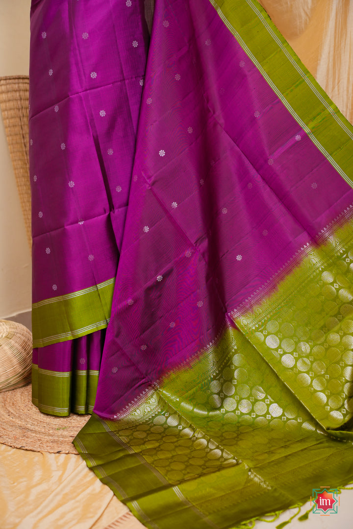 Purple With Green Kanjivaram Soft silk Handloom Saree Mythili