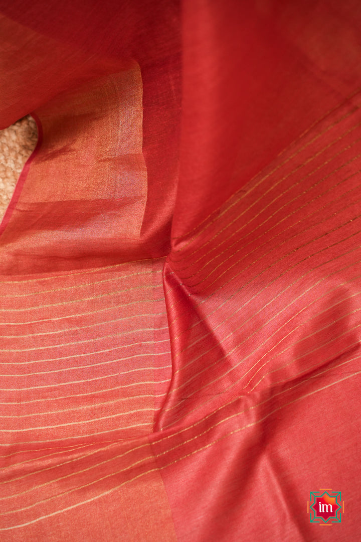 Rust Orange Bhagalpur Tussar Handwoven Silk Saree