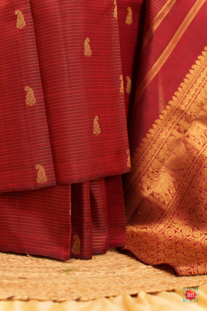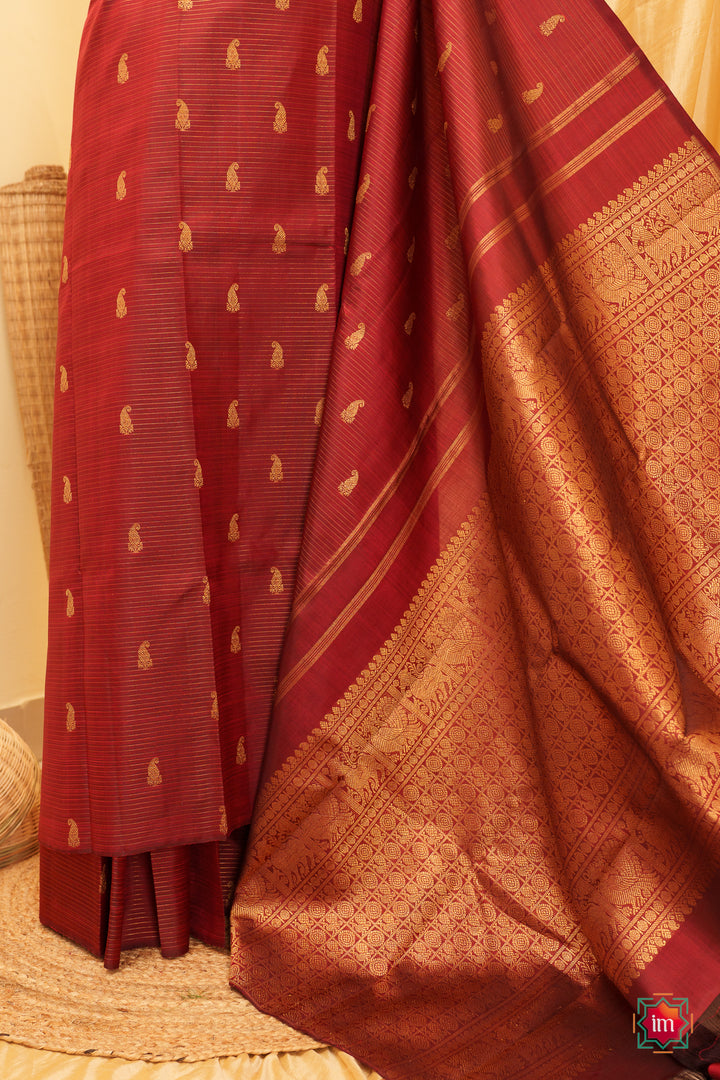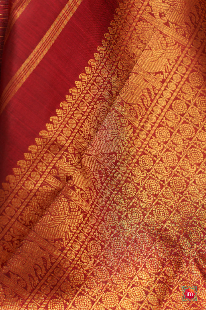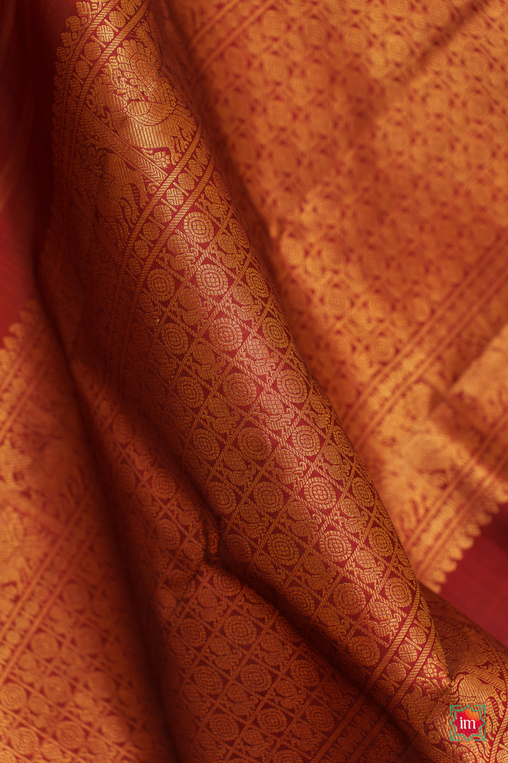 Rust Vairoosi Kanjivaram Pure Zari Handloom Saree Rukmini